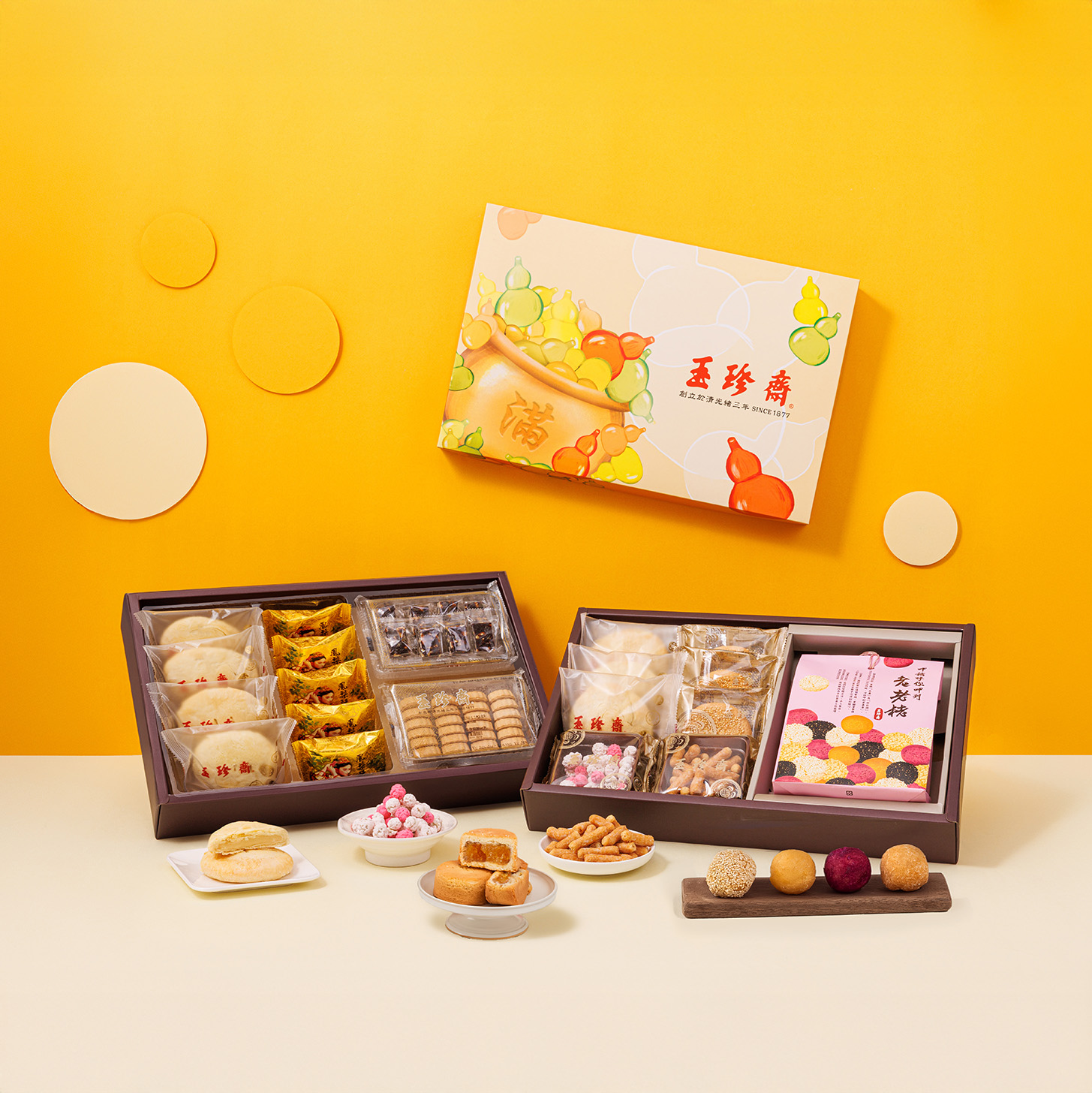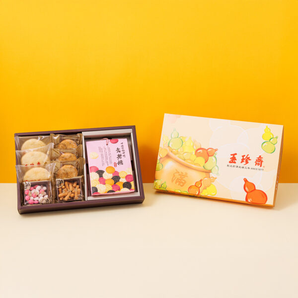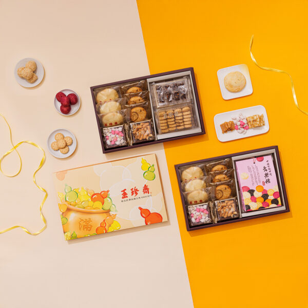 - 福氣滿滿禮盒B:鮮奶小酥餅、堅果香餅、小點生仁、小點寸棗與迷你老老老